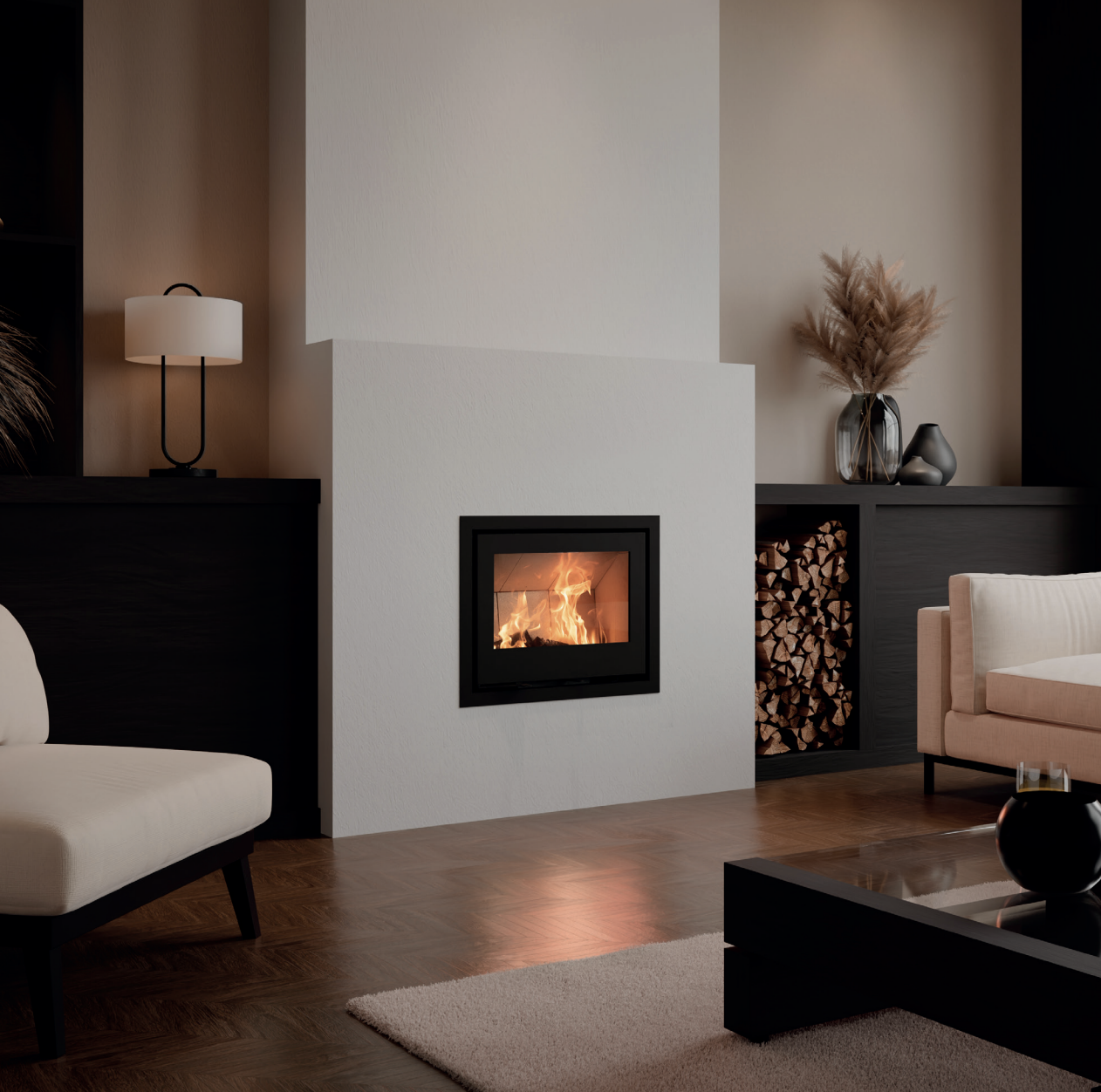 Côté design, le Lineà Ineo 67 H s’intègre parfaitement dans tous les intérieurs. Il peut être encastré dans une cheminée existante ou habillé sur mesure pour devenir un véritable élément architectural. Son style épuré, sa façade vitrée et ses finitions soignées permettent de l’adapter à toutes les décorations, du rustique au contemporain. Vous pouvez même choisir le type de porte qui correspond le mieux à votre goût : une version classique en acier ou une porte full glass sérigraphiée pour un rendu plus moderne. À l’intérieur, deux finitions sont disponibles : un foyer en acier noir pour une chaleur rapide, ou en chamotte claire pour une accumulation plus douce et un contraste visuel élégant.