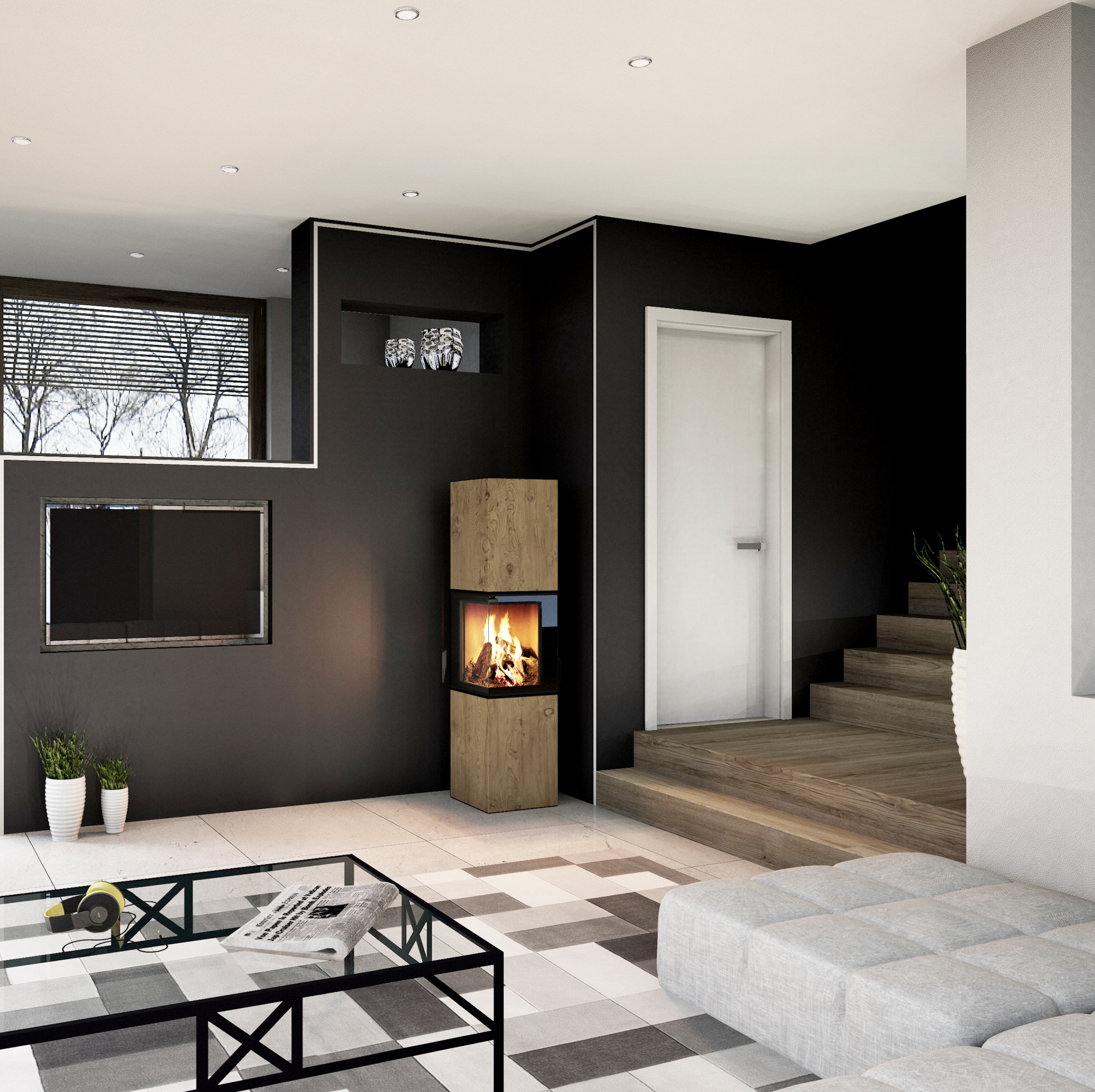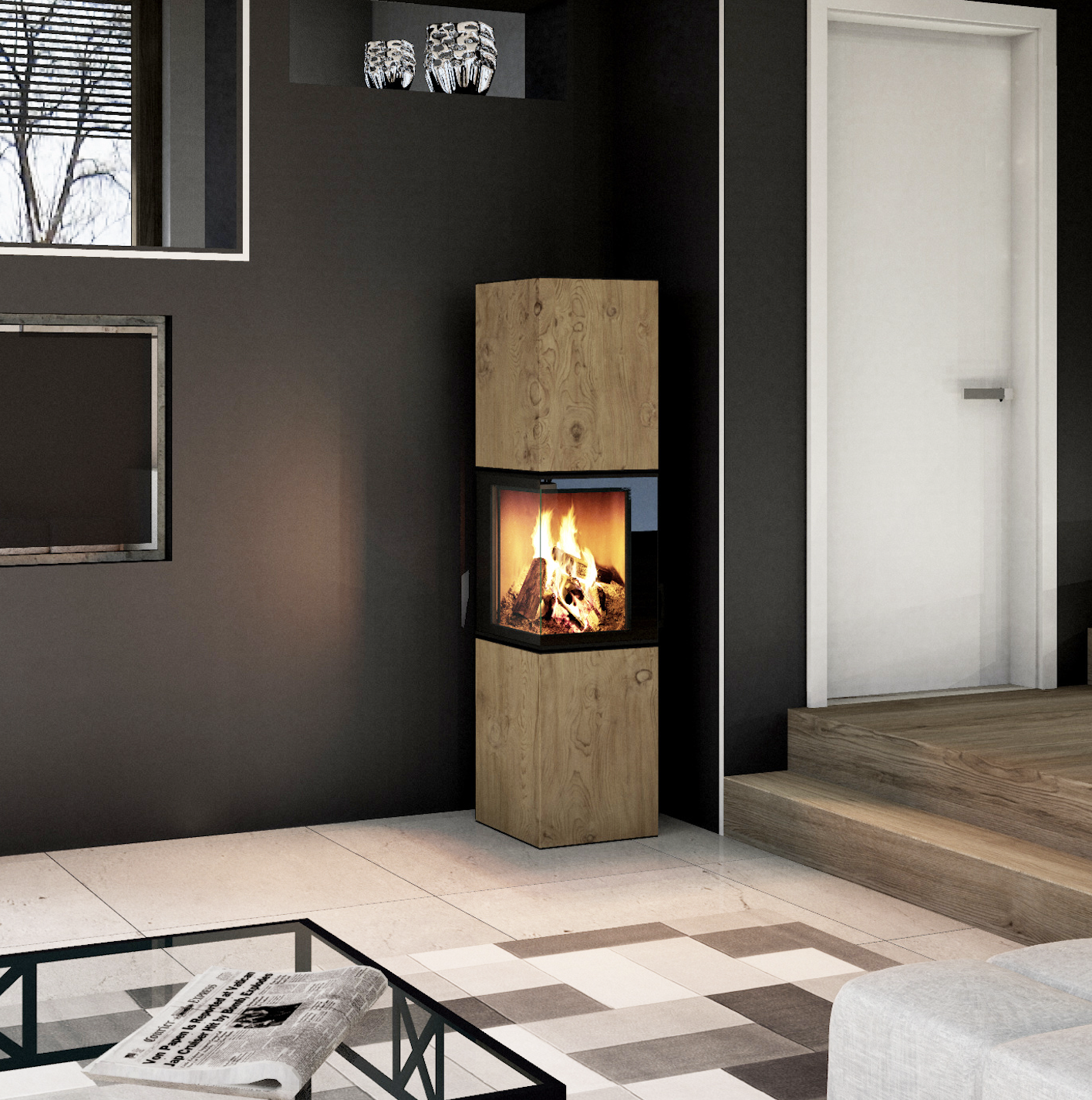 Vitre d’angle pour une vue dégagée sur les flammes